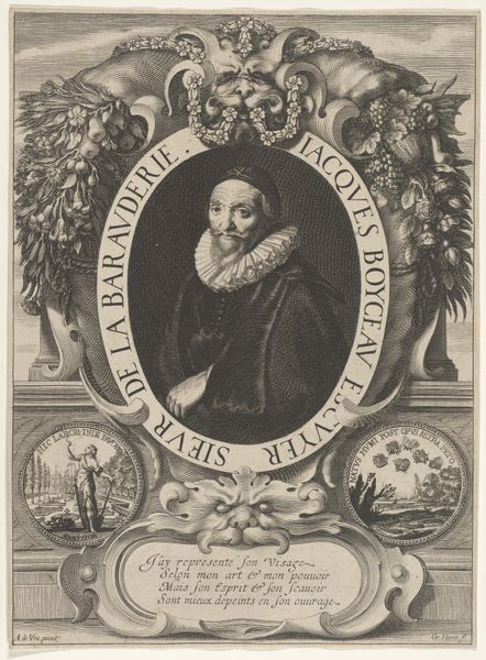 Simon de Pas produced this engraving of George Villiers, Duke of Buckingham, sometime in the early 17th century. Engravings like these were important means of circulating images of powerful men at the time. Villiers was a controversial figure, rising to prominence as a favorite of King James I, and later wielding significant influence under Charles I. This image presents Villiers in a way that reinforces his status and legitimacy. The elaborate frame includes symbols of nobility, such as a coat of arms, cherubs, and Latin inscriptions praising his virtues. The detailed rendering of his clothing and refined features further emphasizes his wealth and power. The engraving, as a medium, played a crucial role in shaping public perceptions of individuals like Villiers. These images were not simply neutral portraits, but carefully constructed representations intended to project a particular image. To understand the full significance of this image, we can consult primary sources such as letters and state papers and study the history of portraiture in England. Such research can reveal the complex social and political context in which this image was created and consumed.