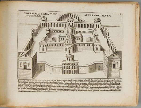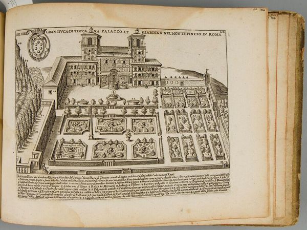 Editor: This is "The Gardens of Ovid" by Giacomo Lauro. It's an old print from a book, showing a formal garden layout. It feels very controlled and geometric to me. What stands out to you about its creation? Curator: The printmaking process itself is crucial here. The labor involved in engraving the copperplate, the materials of ink and paper, and the very act of reproduction speak to a specific mode of knowledge dissemination and consumption in its time. Editor: So, it's less about the garden itself and more about how the image was made and circulated? Curator: Precisely! Consider the social context. Who had access to these images, and what did it mean to possess and share them? The materiality carries meaning. Editor: I hadn't thought about it that way. Thanks! Curator: Of course! Considering the means of production always adds another layer of understanding.
