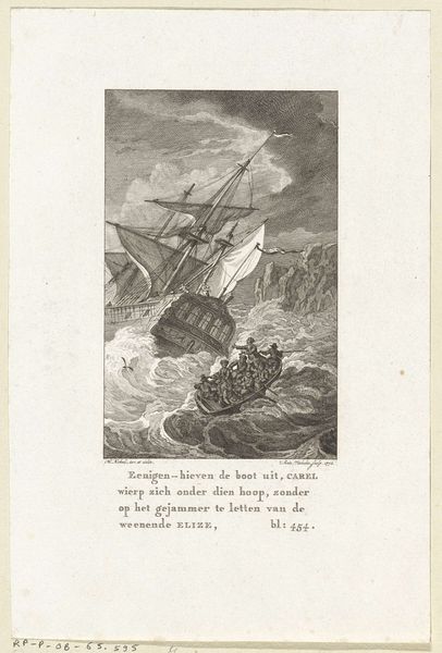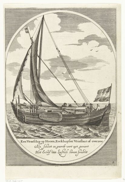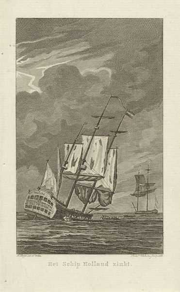 Editor: This is "Decoration at the house of Mr. J. van der Souw in Amsterdam, 1766", an engraving by Noach van der (II) Meer, dating from around 1774-1776. The ship under a divine, all-seeing eye, sailing towards the sun, gives a really strong impression. What social forces do you see at play here? Curator: The print clearly references the power and prestige associated with Dutch maritime trade. The prominent display of the ship suggests wealth, exploration, and the political power linked to naval strength. How does the artist depict this power, and for what audience? Editor: Well, the size of the ship and the presence of many people on board speaks to success, but the divine eye and angelic figures seem almost allegorical. Curator: Precisely! Think about the context of the Dutch Republic. It was a nation built on trade, and imagery like this print reinforced a sense of national identity. The sun could represent new beginnings, or the enlightenment, shining on a nation favored by God. Who, exactly, is favored by God in this context? Editor: I see. It almost feels like propaganda now. Did these kinds of prints actually sway public opinion, or were they more of a symbolic statement? Curator: That is a great question! Disseminating information and molding perceptions are central to visual culture. The print served not just as decor but also as a form of visual rhetoric. What kind of societal impact did imagery like this ultimately have? It prompted discussions on identity and authority. Editor: Wow, looking at it that way gives me so much more to think about than just aesthetic appeal. Thanks for the fresh perspective! Curator: It's fascinating to analyze how art becomes intertwined with politics and social values over time, isn't it? Now I want to study similar art prints of the same period.