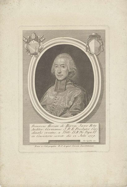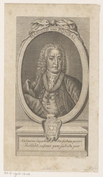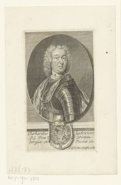 Pieter Tanjé created this print of Ernst August I, Duke of Saxe-Weimar-Eisenach, sometime in the 1700s. As a portrait, it speaks to the sitter’s elevated social standing and the hierarchies of the time. Note how Ernst August is depicted: he is framed by a classical oval and adorned with symbols of military power and nobility. From his powdered wig to the elaborate detailing on his garment, the image is carefully constructed to convey authority and status. Yet, at the same time, we might consider the emotional life of the Duke. His gaze is averted, perhaps conveying a sense of melancholy or introspection. The portrait operates within the conventions of representation expected for someone of his position, but it also hints at the complexities of individual identity within a rigid social structure. It reminds us that portraiture is about both public image and the nuanced, personal experiences of the sitter.
