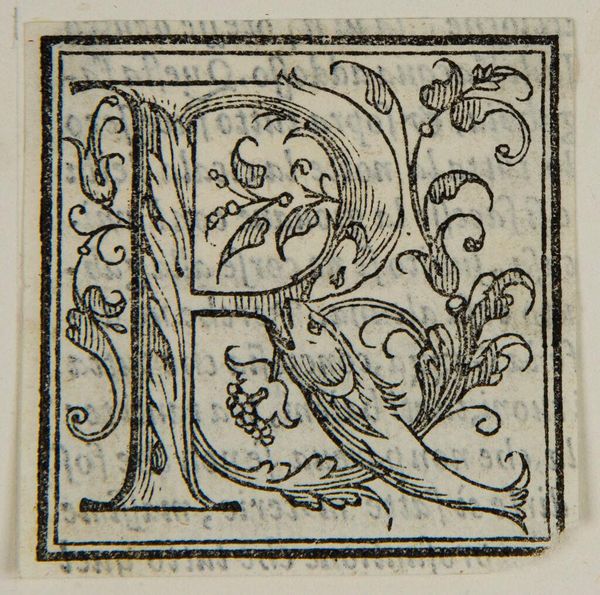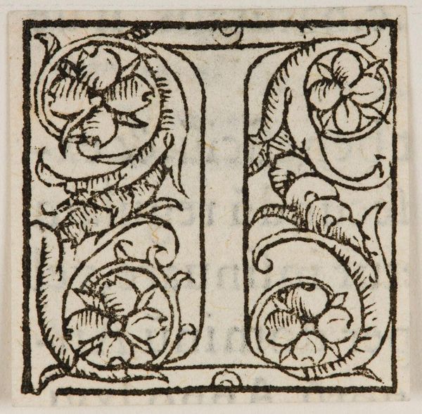 Editor: So, we're looking at "Letter E," made by an anonymous artist. I find it really striking how this simple letter is transformed into something so ornate. What's your take? Curator: It's more than just ornate, isn't it? The “E” feels almost like a little world. I wonder, what kind of stories could begin with this initial? A love story, maybe, with those floral elements as sweet metaphors? Or, a thrilling adventure, with the letter itself becoming a secret map? Editor: Wow, I never thought of it that way. It's like a little portal to a different realm! Curator: Exactly! Art often invites us to become co-creators, you know? To fill in the blanks and spin our own narratives.