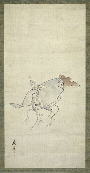Curator: This ink drawing, by Shibata Zeshin, depicts Daikoku's mallet resting near three mice. It feels… whimsical. Editor: It strikes me as a commentary on prosperity, but tinged with a critical lens. Daikoku is the god of wealth, but the mice suggest a natural order indifferent to divine power. Curator: Precisely. The mallet, a symbol of wish-granting, is almost overshadowed by the active mice. In Japanese folklore, mice are associated with resourcefulness and fertility, often linked to Daikoku himself. Editor: But isn't there a tension? Are these mice benefiting from Daikoku's blessings, or are they a subtle reminder of the limitations of even divine influence in addressing social inequalities? Curator: Perhaps Zeshin is suggesting both. The image oscillates between reverence and a gentle critique of blind faith in material wealth. Editor: A compelling tension indeed. It prompts us to consider the social dynamics and the disparities wealth can create. Curator: A thoughtful piece, offering a blend of cultural symbolism and quiet social commentary. Editor: Leaving us to ponder the complexities of prosperity and its impact.