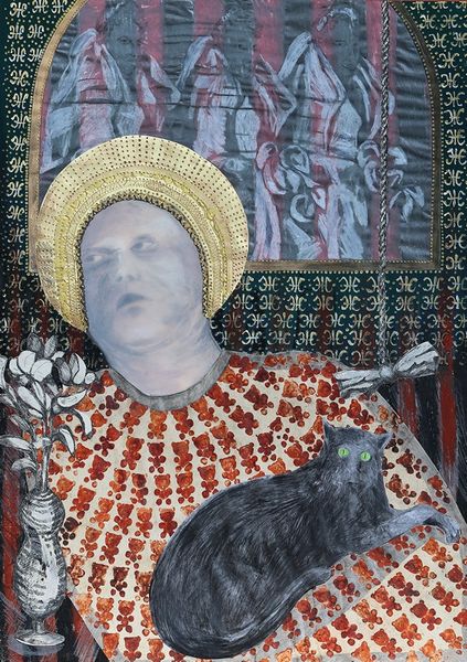 Małgorzata Serwatka made this painting, Grandmother Józefa’s Shoes, and well, it's a mystery when! But look at the way she puts it together, kind of collaged, pieced, and layered. You get a sense of how she was thinking, right? I’m drawn to the shoes, the way they sit there, solid and worn, almost like portraits themselves. They’re placed at the bottom, almost obscuring the red and green striped ground, but that's important too because it creates a kind of stage for this intimate scene. Then there’s this ghostly figure of Jesus duplicated in the background, watching over everything. Serwatka uses this rough-hewn mark-making that feels direct and unfiltered. The colors are muted, but there's still this raw energy. I feel a connection with outsider art and maybe even artists like Paula Modersohn-Becker, who also looked at ordinary people with such empathy. Ultimately, it’s a reminder that art doesn't have to be perfect. It’s more interesting when it’s a little broken.