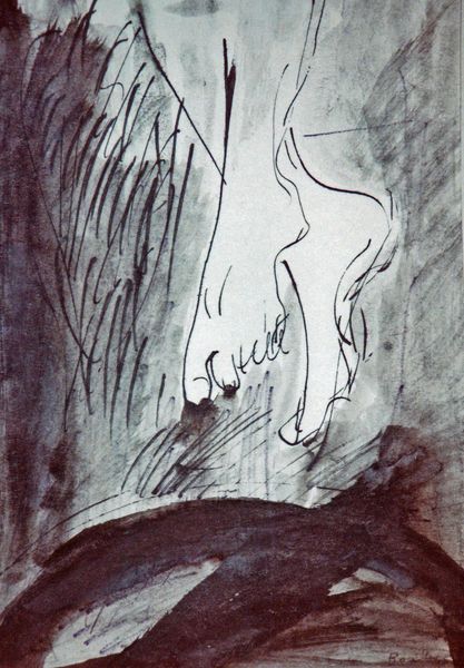 This is 'Minotaur is Wounded' by Pablo Picasso. There's no date attached, but looking at the colors, it feels like it came about through a quick, intuitive process. The blues and grays give a somber mood, contrasting with the raw energy of the subject. The Minotaur, usually a figure of strength, is shown here vulnerable, wounded by arrows. Picasso’s line work is vigorous, almost violent, reflecting the inner turmoil of the scene. Look at the way he defines the muscles and the contorted face of the Minotaur with just a few strokes. The boat above, carrying silent witnesses, is sketched with an almost ghostly lightness. It reminds me a little of Goya and his aquatints. Picasso often used mythological themes to explore his personal demons and desires, and this piece feels like a very direct expression of those struggles.