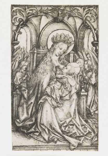 This image of the Holy Family by the Master of the Amsterdam Cabinet was made using a printing technique called engraving. The artist would have used a tool known as a burin to manually carve lines into a copper plate. Ink is then applied to the plate, and wiped off the surface, leaving ink only in the carved lines. Finally, paper is pressed onto the plate, transferring the image. The lines in this engraving are remarkably fine and densely packed, creating a sense of depth and texture. The artist used cross-hatching and subtle variations in line weight to model the figures and create a soft, atmospheric light. This painstaking and highly skilled process would have required immense patience, precision, and control of the burin. The very act of engraving, a process of slow and deliberate labor, infuses the image with its contemplative mood. By understanding the hands-on labor involved, we can appreciate the artistry and dedication required to create this intimate image.