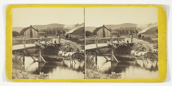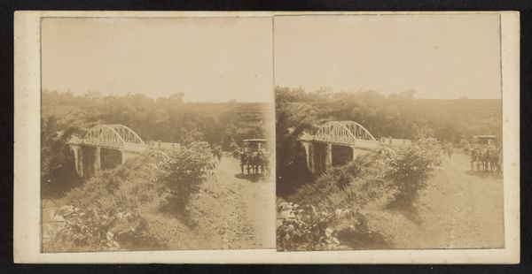 This untitled photograph captures a simple bridge, likely made in the late 19th century using the stereograph technique. The bridge, a symbolic connector, has appeared in various forms throughout history, from the Pontifex Maximus—the "greatest bridge-builder"—of ancient Rome to the precarious crossings in Turner's tumultuous landscapes. Notice how this bridge, in its stark simplicity, invites reflection on transitions and passages. Bridges, inherently liminal spaces, have long held psychological significance, embodying the crossing from one state to another—life to death, known to unknown. They act as conduits for both physical and metaphysical journeys. The bridge, like the ouroboros—the snake eating its tail—represents a cyclical journey, a return. Over time, its symbolic weight shifts; the material bridge becomes a potent metaphor for enduring cultural and psychological phenomena, continuously resurfacing in our collective consciousness.