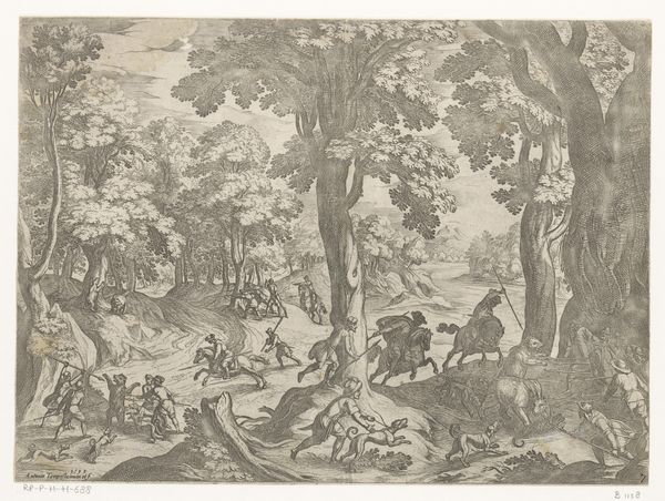 Antonio Tempesta made this print, “Hunt for deer and a wild boar,” using etching. Prints like this one circulated widely in Europe during the late 16th and early 17th centuries. It depicts an aristocratic hunting party. Hunting was a pastime of the wealthy and powerful in European society. It was a display of their privilege, wealth, and control over the natural world. The scene creates meaning through its depiction of men on horseback, hunting dogs, and wild animals in a forest setting. Tempesta was Italian. His work reflects the tastes and interests of the upper classes in Italy and elsewhere in Europe during his time. Prints of this kind also had an important institutional function. They were collected by artists and connoisseurs who wanted to create a library of images. They also reveal changing attitudes toward nature, class, and power. As historians, we might use estate records, hunting journals, and other documents to learn more about the social context in which this image was made. By doing so, we gain a deeper understanding of its cultural and historical significance.
