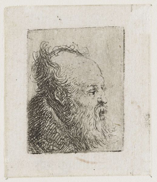 Moses ter Borch created this drawing, "Head of a Bearded Old Man," sometime in the 17th century. The sketch, rendered in pen and brown ink, immediately conveys a sense of introspection. The composition is strikingly simple, focusing entirely on the head and upper torso of the man. Ter Borch’s marks, lines, and shading delineate form, but also texture. Notice how the loose, wiry lines describing the beard and hair contrast with the smoother, more deliberate strokes defining the face. This contrast creates a palpable sense of depth and character. The man's gaze, directed downward, enhances the overall mood of contemplation. The drawing is framed by a thin, dark line, which not only contains the image but also seems to isolate the figure, reinforcing the theme of solitude. It’s a powerful study in the expressive potential of line and tone, capturing a moment of quiet reflection. It invites us to consider the subtle ways in which visual elements can convey complex emotional states.