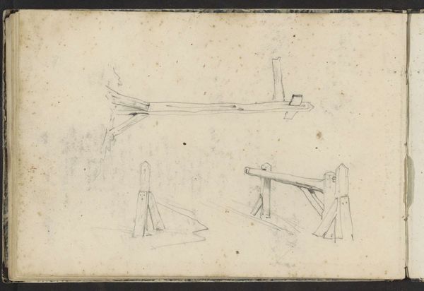 Curator: Giovanni Battista Bracelli's print, "Two Cubic Figures with Their Hands on the Ground," created around 1624, presents us with quite a curious image. What do you make of it? Editor: They're so bizarre! They remind me of some strange kind of industrial machinery, but… cute? Like giant, ungainly robot puppies. The materiality, the starkness of the engraving, it really highlights the artificiality of the forms. Curator: Indeed. Bracelli was working in a period when the patronage system strongly influenced artistic creation. It makes you wonder who these strange contraptions were for? What purpose could they serve within the societal structures of the time? They feel satirical, or even revolutionary for their time. Editor: I’m curious about the etching process itself here, what that means for how this work would be reproduced and distributed, even. How labor-intensive was it, and how does the medium affect our interpretation of the geometric forms themselves? Curator: Those are key questions! This was created amidst the burgeoning printmaking industry. The relative ease of distribution facilitated a broader dissemination of ideas, regardless of the figures themselves or any symbolic interpretation, this piece shows off technological and societal advances. Editor: And, on the topic of technique, the fine lines emphasize the weight and sturdiness, almost contradicting their fantastical design. I’d like to know more about the labour and workshops involved in Bracelli’s printing and engraving processes and their place in the era’s material culture. Curator: It’s intriguing to consider. Bracelli might be critiquing the period’s mechanization or celebrating the intellectual ability of humans, we're left to contemplate the true intent and role of the work during the shift from the Renaissance to Baroque periods. Editor: I leave feeling that Bracelli has used humble material—the print itself—to show technological imagination taking shape during a period when material progress was changing every aspect of society.