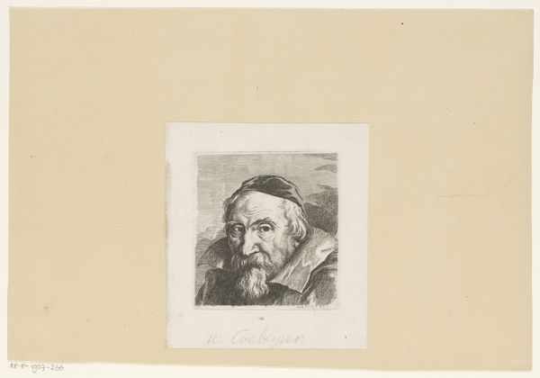Editor: This is Charles Théodore Bernier's "Head of an Old Man," from 1887. It's an etching, and the stark contrasts really give it a feeling of age and almost…resignation? What do you see in this piece? Curator: The choice to portray an aging figure in 1887 raises interesting questions about the artist’s socio-political consciousness, doesn't it? Consider the period; rapid industrialization, rising social inequalities, and burgeoning social movements. Could Bernier be making a subtle comment on the displacement or the disregarded wisdom of the older generations amidst such dramatic societal shifts? Look at the intricate details of the face – each line etched represents a life lived, a story untold. Editor: I hadn’t considered that. So you're saying that, instead of just being a study in realism, it could be read as a commentary on the value—or lack thereof—placed on older people during a time of rapid change? Curator: Precisely. Art often acts as a mirror, reflecting the anxieties and tensions of its time. How do you interpret his choice to focus solely on the head, almost isolating him from any specific context or narrative? Editor: Maybe to universalize the experience? To say that this feeling of being left behind isn’t specific to one group or place? Curator: It could be. Or, perhaps, to concentrate the viewer's gaze entirely on the emotional weight carried within that face. How does this resonate with our contemporary discussions on ageism and the marginalization of the elderly? Editor: That's a powerful connection. I hadn't thought about this piece as having such resonance. Curator: Exactly! Seeing art this way enables us to not only understand the past but also critically engage with our present. I'm so glad that you can see these things so intuitively. Editor: Me too. I'm so glad that you helped me see things with a wider lens.
