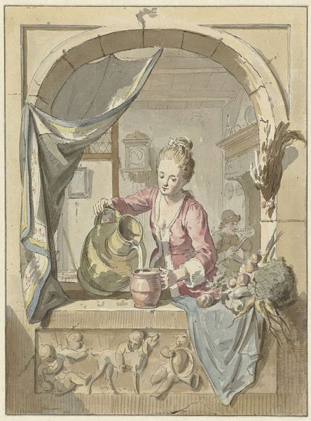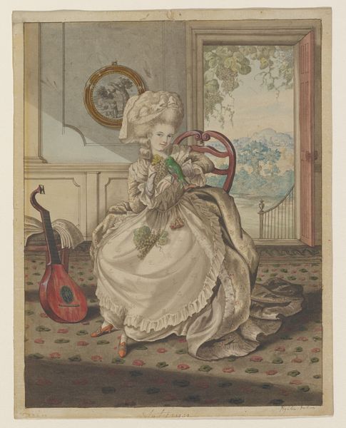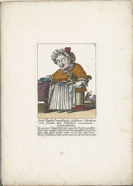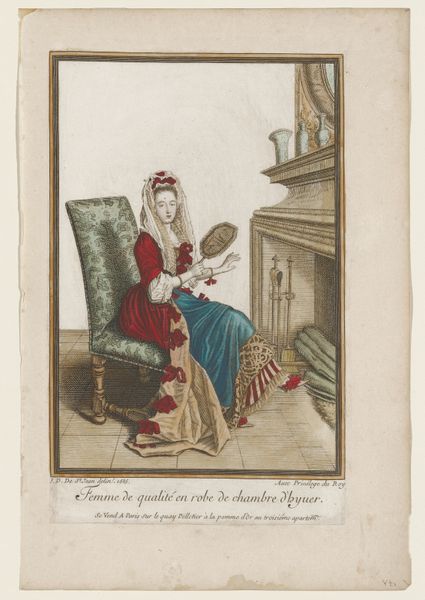 Robert Dighton created this hand-colored etching titled "December". We see a woman of the English upper class passing time, perhaps alone, at the close of the year. The late 18th century was an era of immense social change, marked by revolutions and shifting class structures. Here, the woman's engagement with fortune-telling cards invites us to consider the uncertainties and desires that might occupy her world. Are they reflective of a broader societal mood? Is this a time when old certainties are being questioned? The inclusion of the domestic cat hints at the comforts and constraints of her privileged domestic life. The quiet, contemplative mood evokes a sense of the personal and emotional dimensions of life in a period defined by social upheaval. The work doesn't necessarily reinforce traditional representations of women, but rather it offers a glimpse into the nuanced experiences of a woman navigating a changing world.