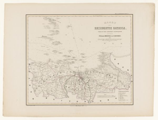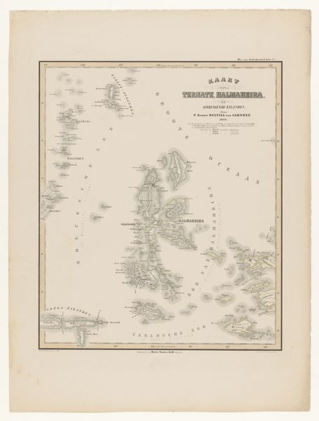Editor: Here we have “Kaart van de Banda-eilanden,” a lithograph from 1854 by F. Cronenberg. It's a very detailed map. It gives a serene sense of exploration. What do you find striking about this piece? Curator: Well, right away, the level of detail grabs me, it’s obsessive, really. Imagine someone sitting down, meticulously etching out coastlines and tiny settlements of these spice islands, a jewel in the Dutch colonial project. It’s a map, sure, but it is so much more! Doesn’t it also speak of power and possession? A way of visually "swallowing" land? Editor: I see what you mean, like a declaration. And, correct me if I’m wrong, but the style also feels… romanticized? Curator: Oh, absolutely! It's realism filtered through an orientalist lens, right? There's a touch of exoticism – an imagined "otherness." It also feels strange and slightly… sad? Maybe the precision of the drawing juxtaposed against what you can't draw – the exploitation it facilitated. What do you make of the colours? Editor: They are quite muted – blues and pinks – almost like a faded dream. Perhaps illustrating how these far-off colonies would fade into memories and legacies over time? Curator: Exactly! The colours feel melancholic – beautiful, yet holding this untold history beneath the surface. I appreciate you pointing that out. A great piece, but definitely opens up some deep thoughts. Editor: Me too! Thanks, this gave me a whole new perspective.