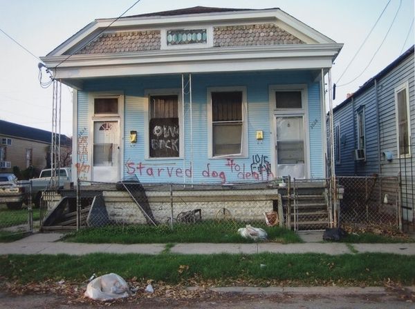 Editor: William Greiner's photograph, "American Flag on Blue House, New Orleans, LA" presents an interesting juxtaposition of national symbol and domestic space. What strikes me is the slightly distressed state of both the flag and the house. How do you read this image? Curator: Well, consider the materials. The faded flag, the peeling paint on the clapboard siding – these are not accidental. Greiner is drawing attention to the labor and materials that construct both the idea of America and the physical structures we inhabit. It challenges romantic notions by showing the wear and tear of everyday existence. Editor: So, it's less about the ideal and more about the real? Curator: Precisely. It invites us to consider the social context: who lives in this house? What kind of work sustains this place? The flag, then, becomes less a symbol of unity and more a signifier of economic realities. This challenges us to consider the means of production, the labor, and the consumption linked with domestic spaces. Editor: That's a different perspective than I initially considered! Curator: By focusing on the materiality, we see beyond the surface.