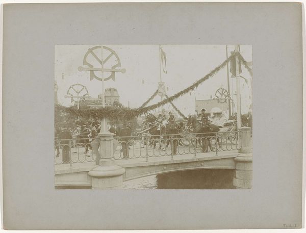 Curator: This gelatin silver print, dating from between 1873 and 1890, offers a glimpse of the water clock in the Villa Borghese gardens in Rome. The image captures a carefully orchestrated scene within a romantic landscape. Editor: It strikes me immediately with a feeling of orchestrated nostalgia. The way the light dapples across the artificial rockwork creates an almost dreamlike impression. There’s a clear attention to detail in capturing texture—the stone, the trees, and that imposing clock tower. Curator: Precisely. The clock itself speaks to the rise of public works in the 19th century, where timekeeping became a shared experience facilitated by civic structures. Its placement in the Villa Borghese also highlights the park’s role as a social space for leisure and recreation. Editor: And what materials went into building this public object. The photo helps visualize the social processes behind something like the public clock and water feature—whose labor moved the stone? Where did the clock materials come from and who produced them? Curator: That's key to understanding this period, actually, as the construction of these parks and follies was often interwoven with the growing visibility of the industrial workers shaping these spaces. It reflects a moment where nature was reinterpreted through the lens of burgeoning industry and public consumption. Editor: I see that consumption embodied in how artifice creates 'nature'. Even the clock itself acts like a material witness to a society concerned with framing nature and controlling temporality within it. There’s something poignant about the artificial rocks trying to appear organic around the very structured, mechanical clock. Curator: It encapsulates how technology and nature became intertwined themes in late 19th-century art. This print gives us both the physical documentation of this interplay and the narrative crafted for public consumption. It offers an idealised picture of urban life. Editor: The contrasts and the contradictions make it a valuable piece for thinking about landscape, technology, and public experience today. Curator: Indeed, a study of progress at odds with an increasingly artificial version of the natural world.