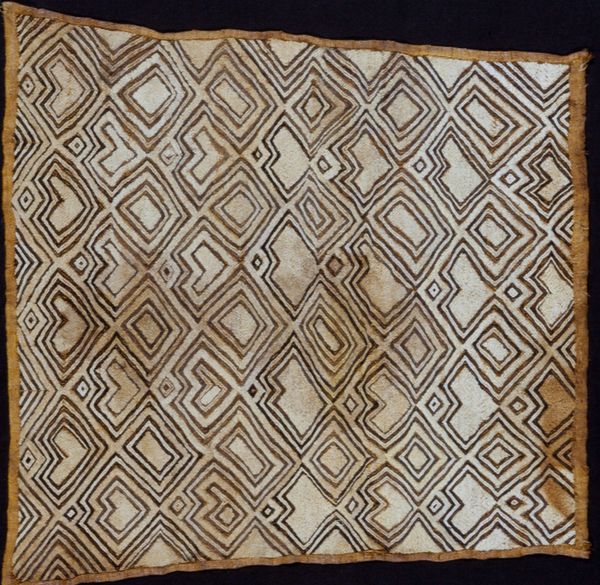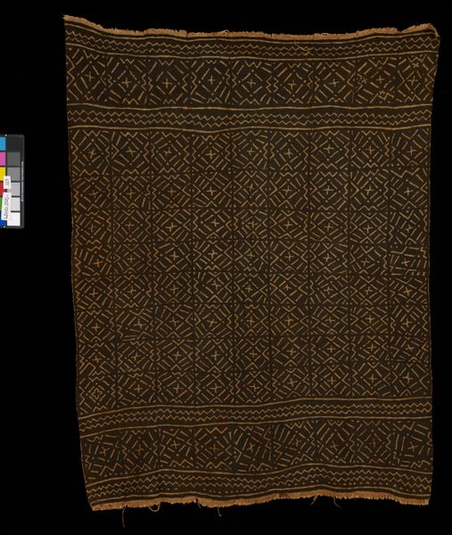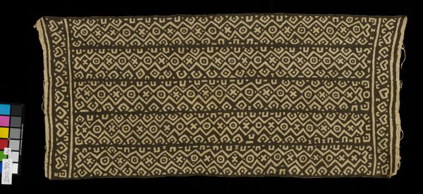 Editor: Here we have "Skirt for a Married Woman," made around the 20th century. It's a cotton textile piece and it feels...restrained, almost austere, with all its geometric patterns. What do you see in this piece? Curator: The geometry isn’t arbitrary. Consider the symbols employed here. We see cross shapes nestled within diamonds and rows of chevrons. These likely carried very specific meanings within the cultural context, reflecting societal values around marriage and womanhood. The symbols become a cultural vocabulary, repeated to emphasize these values across generations. Editor: So, it’s not *just* a skirt, it’s a carrier of cultural memory? Curator: Precisely. Each motif likely encoded stories, beliefs, and status. Can you imagine what the act of weaving such patterns might have represented to the women involved? What emotions are stitched into each diamond? Editor: That makes me think about the women who made it and wore it. The textile is an embodiment of communal knowledge, isn’t it? Curator: Indeed. It also subtly suggests the ongoing evolution and adaptation of cultural values, as these patterns might morph and reinterpret older beliefs in light of the present. These repeated motifs—they resonate like echoes of the past. They teach us how the fabric of society is intricately interwoven, wouldn't you agree? Editor: I definitely agree! I never thought of geometric patterns having so much symbolic meaning before! Thank you! Curator: My pleasure. It is fascinating how a simple textile can unlock complex ideas about identity and tradition.
