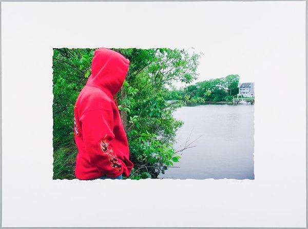 Non Specific Threat (Production Still) 2003 2007 is an ultrachrome colour digital print in landscape format by the Northern Irish artist Willie Doherty that features a young man depicted in profile view in the centre of the image. Partly in shadow and shown from his right side, the man (the actor Colin Stewart) has a shaved head and wears a blue denim jacket over a black shirt, and stares into the distance with a passive yet tight-lipped expression. At the left side of the composition is a dilapidated wall painted in white and yellow with a patch of red graffiti visible near to the bottom, while the background of the image features a grassy verge, some trees and an area of wasteland.