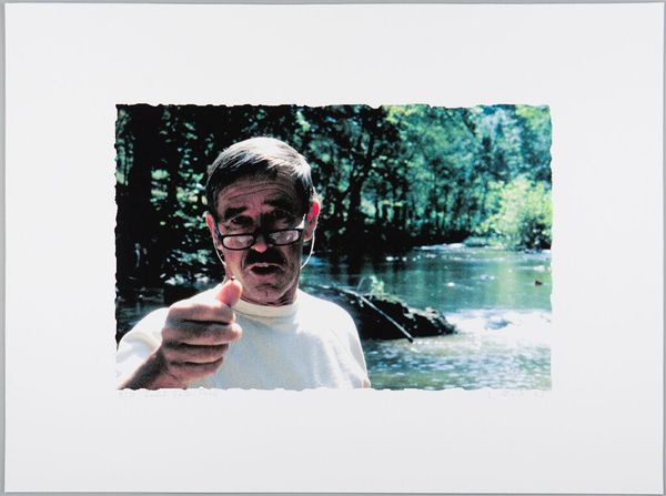 Curator: Willie Doherty's "Non Specific Threat (Production Still)" from 2003 immediately evokes a sense of unease and isolation. Editor: Yes, there's a starkness. The shadowy figure, the desolate landscape… it speaks of vulnerability. Is he a victim or a perpetrator? Curator: Doherty often explores the complexities of identity and place in Northern Ireland. The title suggests a threat that's diffuse, almost ambient. Editor: The man's profile is so sharply defined against the blurred background. Is he searching for something, or perhaps on the run? The starkness amplifies this feeling of uncertainty. Curator: His gaze avoids direct engagement, indicative perhaps of a society grappling with unspoken fears and tensions. It captures the psychological weight carried by individuals living through conflict. Editor: Agreed. The image becomes a vessel for our own anxieties, our own projections of threat. The man is a symbol of vigilance, or perhaps, resignation. Curator: Precisely. Doherty masterfully captures the pervasive atmosphere of suspicion that defined that time. Editor: It's a powerful piece, prompting us to confront the intangible forces that shape our lives.