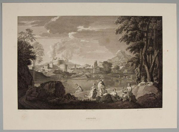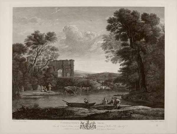 Editor: This print, "Phaeton" by William Woollett, is so detailed! The figures almost seem to be performing on a stage. What's your read on the mythological moment Woollett is trying to capture? Curator: Ah, "Phaeton," a classic tale of ambition gone awry! I see Woollett using the landscape itself to echo the story's drama. The light, the shadows... it's like the world is holding its breath, waiting for Phaeton to lose control of the sun chariot. What do you think? Editor: I didn't notice that before! The way the light and shadows are presented is like a dramatic performance. Curator: Exactly! And consider the architectural ruins—symbols of past grandeur, perhaps foreshadowing Phaeton's fall? These details really add depth! I find the experience of working with an allegorical image from the classical period fascinating. Editor: I'll never look at prints the same way again. Curator: That's the magic of art, isn't it?