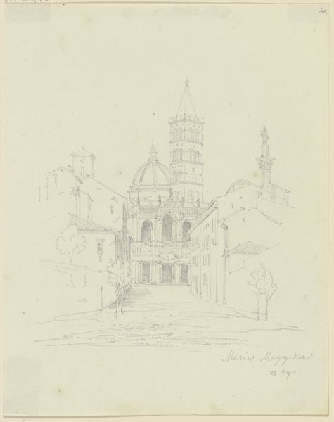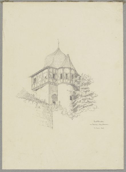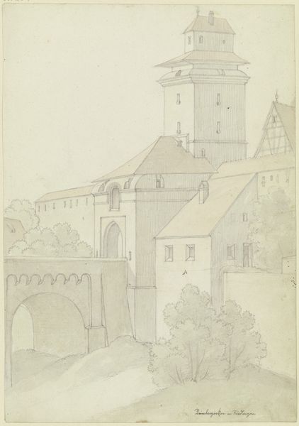 Editor: We’re looking at "Die Klosterkirche St. Laurentius in Seebach bei Bad Dürkheim" by Friedrich Eisenlohr, created in 1846. It’s a delicate pencil and pen sketch on paper, currently held at the Städel Museum. I find myself drawn to the serene stillness of it, that tower standing resolute amidst what looks like partial ruin. What strikes you most about it? Curator: It whispers to me of time's relentless passage, that drawing. Eisenlohr, in his Romantic gaze, doesn't just depict architecture; he captures the dialogue between human endeavor and nature's patient reclamation. Do you notice how the foliage both softens and obscures the structure? Editor: Yes, it's as if nature is gently embracing, or perhaps even consuming, the building. Curator: Exactly! There’s a palpable tension between decay and enduring strength. The stark lines of the architecture contrasted with the soft, almost ethereal quality of the pencil work...it feels like a memory, doesn't it? It almost makes you wonder if Eisenlohr wanted to evoke a sense of nostalgia or perhaps contemplation on the impermanence of things? Editor: Definitely, that's something I hadn't considered so directly, but now it makes perfect sense with the Romantic style. The piece feels more melancholic now, even with the solid presence of the tower. Curator: Melancholy’s a perfect word, truly. It's like Eisenlohr captured a single, fleeting moment in the life of that old church – a whisper across the centuries. It prompts you to wonder about those who built it, worshiped in it and, like us, admired its solemn beauty, then vanished like sketches. Editor: That's beautiful. It’s funny, seeing the detail work made me initially think of precision, not impermanence! Curator: Isn’t it wonderful how a single artwork can hold so many layers? Art constantly surprises.