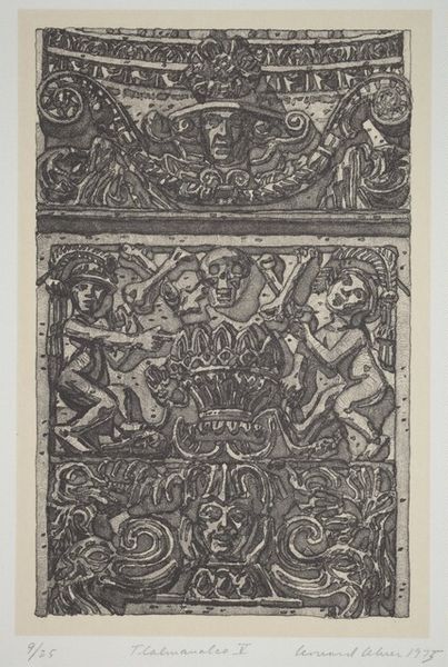 Heinrich Aldegrever made this Ornament with Mask sometime in the mid-16th century, using the intaglio process of engraving. With engraving, the image is incised into a metal plate, likely copper, using a tool called a burin. The artist would have applied considerable pressure, using the strength of their arm to force the tool through the resistant metal, creating clean, precise lines. Ink is then applied to the plate and the surface wiped clean, leaving ink only in the engraved lines, before being printed onto paper. The resulting print has a tactile quality; you can almost feel the presence of the artist’s hand. The image is teeming with fanciful motifs – grotesque masks, human figures, and swirling foliage. Ornament prints like this one were essential in disseminating design ideas, circulating patterns for other artists and artisans to copy. In this way, printmaking fueled the wider Northern Renaissance economy and culture of ornament. It collapses any hierarchy between fine art and practical design.