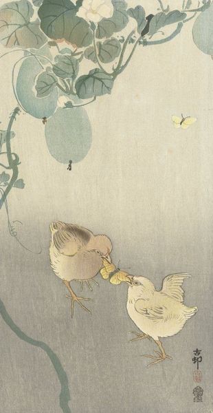 Curator: Looking at “Long-tailed Birds and Roses,” a watercolor and ink piece from the late 18th century by Sō Shiseki. Found at the Minneapolis Institute of Art. Editor: It’s...delicate. And wistful. The pale hues almost make it feel like a memory. There's something melancholic about the scene despite the roses. Curator: Shiseki was a master of detail. See the meticulous rendering of the feathers, the individual rose petals? It's more than just observation; it's like he's inviting us into this intimate world. I love the juxtaposition of the crisp lines of the perching bird and the more fluid strokes used to depict the ripples in the water. What do you make of that contrast? Editor: Well, the positioning is interesting too. One bird is above the water, looking down. Perhaps it sees its future, or its reflection—all these colonial projections about self versus other through natural subjects that served as propaganda for social hierarchies, specifically regarding those of East Asia versus Europe at that moment in time. There's something about that vantage point, the seeming remove... Is it really so far removed or complicit? Curator: I'm struck by the sheer emptiness of the background. That pale wash makes the foreground seem all the more vivid. It gives you this sense of being right there, immersed in the bird’s world. Editor: Absolutely, this stark contrast that draws from philosophies related to nothingness gives rise to different levels of thinking. And for me, that also means considering how these representations and forms of visual communications also made space for Western fascination with Asian cultures—something we have to keep acknowledging. It reflects a moment of immense exchange but unequal power dynamics... Curator: True. Perhaps the stillness asks us to consider what we value and notice when all of the excess is stripped away? This work speaks to that intimate level of understanding nature on a deeper level. And personally, there is so much to keep unpacking when facing what may seem just "surface beauty" here, but actually speaks volumes. Editor: Yes, precisely. “Surface beauty” that belies centuries of complex politics and global reconfigurations… and that are often reflected in how we look at art even now. The piece serves as a reminder that it is a mirror. Curator: Definitely worth a long contemplation, if I can put it that way, despite the fact I have dedicated myself to creating it, haha.