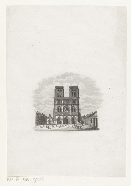 Jules David created this view of the Notre-Dame in Paris in an unknown year using etching. The composition, dominated by the cathedral's imposing façade, is structured around symmetry and depth. The architectural details are rendered with precision, creating a textural complexity that invites close inspection. David’s choice of etching as a medium enhances the graphic quality of the image, emphasizing line and form over color. The intricate network of lines that define the cathedral's stonework, windows, and sculptural elements serve not merely to depict but to construct a sense of architectural grandeur and spatial depth. The balance between light and shadow, achieved through careful modulation of line density, enhances the three-dimensionality of the cathedral, while also evoking a sense of atmosphere. This print invites us to consider how architectural representation intertwines with cultural and historical narratives. The etching process itself, with its emphasis on precision and detail, mirrors the values of the Enlightenment era, in which rational observation and systematic documentation were prized.