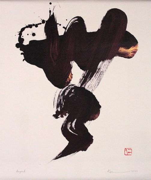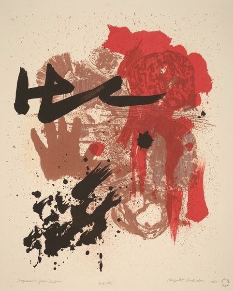 Waichi Tsukata made this print, sometime around 1960, with ink on paper. What strikes me is the sense of immediacy; you can see the artist's hand so clearly in the bold, confident strokes. The textures in ‘Contrast’ range from the solid, opaque black of the lower mass to the delicate, almost transparent grey washes above. Look at the way the ink splatters and bleeds into the paper. It's as if Tsukata is capturing a fleeting moment, a burst of energy frozen in time. The thick, gestural lines feel spontaneous, like a dance across the surface. The layering of the different kinds of marks—the drips, the pools, and the streaks—adds depth and complexity, inviting us to explore the materiality of the medium itself. Thinking about other artists who worked with similar approaches to gesture and form, I’m reminded of Franz Kline. But where Kline’s work is often monumental in scale, Tsukata’s feels more intimate, like a personal meditation on the act of creation.