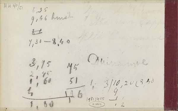 This sheet, covered in numbers and calculations by Johannes Tavenraat, reveals more than mere arithmetic; it hints at the human quest for order amidst chaos. The numerals, meticulously inscribed, echo ancient systems of numerology and accounting, where numbers were not just tools for calculation but symbols of cosmic order. Consider how numerical notations have appeared in various epochs, from the Babylonian clay tablets to Renaissance merchants’ ledgers, each instance reflecting a society's attempt to quantify and control its world. The act of writing numbers itself transforms into a ritual, reminiscent of how early cultures used counting to understand the seasons and predict the future. The emotional weight of these figures might seem trivial, but each number represents a transaction, a measurement, a decision—laden with the anxieties and hopes of its time. These notations evoke a sense of continuity and the persistent human endeavor to decipher and dominate our environment through symbolic representation. The non-linear progression of these symbols resurfaces, evolves, and takes on new meanings in different historical contexts.