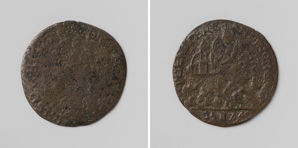 Editor: Here we have a fascinating metal carving from 1539: a 'rekenpenning,' or counting penny, of Karel V, the Holy Roman Emperor. It’s quite worn, and gives me such a tangible feeling of the past! What strikes you most when you look at this, thinking about what this penny might signify? Curator: Oh, the stories it could tell! It makes me think about power, doesn't it? This little metal disc was a tool of the financial council, essentially a calculator. So cold and metallic, yet it represents the very blood that flowed through the empire's veins, extracted by Charles' men! Can you imagine him knowing his face would literally grease the wheels of commerce? A chillingly funny thought, don’t you think? Editor: That's a darkly poetic perspective! I hadn't considered the almost satirical angle of his portrait facilitating royal finance. Were these coins like miniature propaganda pieces? Curator: In a way, absolutely! Currency always projects an image of power. I wonder, gazing at the wear, if this particular coin witnessed heated arguments, sat through long nights of calculating… What a busy little witness! It really humanizes those far-off bureaucratic processes for me, bringing history right into the palm of your hand. Editor: It definitely does. It's incredible to think of all the unseen hands that touched this coin over centuries, working and scheming. Thanks, this gave me a richer perspective to appreciate. Curator: My pleasure. A little worn coin can truly awaken a world of grand meaning!