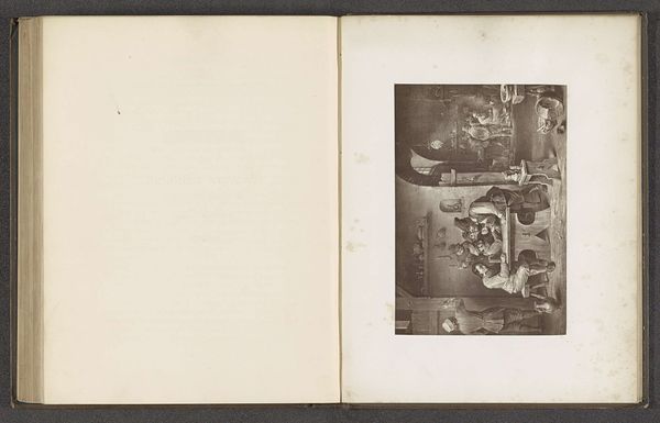 Curator: Here, we have a photo reproduction of a print that was adapted from the painting "The Cavalry Charge" by Adolphe Dubasty, likely made before 1871. The medium combines lithography and photography. What strikes you first? Editor: An overwhelming feeling of controlled innocence. The monochrome palette gives a muted, dreamlike feel, yet the toy soldier suggests impending military conditioning. There's an inherent sadness here. Curator: I see that, given the time it was made and the growing societal acceptance of war-based conditioning, the piece can definitely be viewed through that critical lens. Examining the gender performance embedded within the work is also of paramount importance. Editor: Absolutely, that historical reading gives context. Yet on the level of pure visual symbol, the hobby horse itself speaks volumes. It’s an ancient motif that transforms the mundane into adventure, but here… Curator: But here? Editor: ...there’s a dissonance between the costume, almost a Pierrot or jester-like garb, and the gravity in the child’s face. He isn’t enacting joy; he's almost posing. His performative masculinity anticipates a cultural drive for military excellence. Curator: Precisely. And what are the symbols of this expected manhood in the period's perception of society and identity, and how they come together to be visualized is the cornerstone for how this artwork comes across to a modern viewer. His posture reflects that expectation, it doesn't arise from an inherent excitement but it feels rather coerced and, consequently, artificial. Editor: Do you think, perhaps, the original artist aimed for mere sentimental charm, oblivious to these layers we now perceive? The innocence lost to war's glorification? Curator: Possibly. That's why a continued dialogue about how we view the piece within the intersectional setting that makes sense, helps expose issues that we did not know existed when first faced with this photograph of the print of the painting. This in turn challenges us to explore the values and cultural frameworks we inherit, question their origins, and then push the limits in search of alternative models. Editor: This child’s equestrian moment… It morphs from mere image into a potent symbol, reminding us that our playful fancies become the grounds where ideologies take hold. Curator: I completely concur! A testament to how visual representation—even something seemingly simple like a boy and his hobby horse—reflects back both what we believe and, more powerfully, what society expects us to perform.