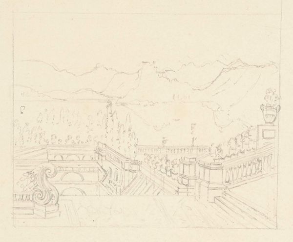Karl Ballenberger crafted this drawing, "Kirchhof in Schwaz mit Ansicht auf Burg Trundsberg," using a delicate graphite technique. The overall effect is a study in architectural forms against a natural backdrop. The almost ghostly quality of the graphite lines creates a sense of distance and timelessness. Consider how Ballenberger uses linear perspective to organize the composition. The prominent church tower on the right anchors the foreground, leading the eye back towards the town of Schwaz and the distant Burg Trundsberg. The use of line is critical here; it not only defines the shapes but also establishes a visual hierarchy, drawing our focus from the immediate to the far-off. This arrangement can be read as a symbolic representation of history, where the immediate structures of faith and memory connect us to broader, more distant historical narratives. The drawing serves as a reminder that art's meaning resides not only in what it depicts but in how it structures our perception and understanding of the world.