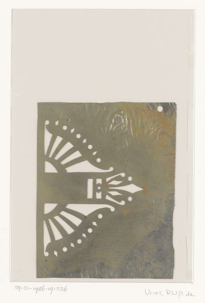 This print, "Blauw stilleven," was created by Harrie Gerritz using linocut, a relief printing technique where the artist carves a design into a sheet of linoleum, then inks and prints it. The choice of linoleum, a common flooring material, is significant. It brings a certain everyday quality to the art, contrasting with the preciousness often associated with fine art prints. The flat, slightly rough texture of the linoleum contributes to the print's distinctive look, with its solid blocks of color and visible tool marks. The process involves careful planning and physical labor, cutting away the linoleum to reveal the image. In “Blauw stilleven,” we see a blue still life framed by geometrical shapes, each interacting with the other. The layering of shapes and colors, all achieved through this hands-on printing method, emphasizes the artist's engagement with the material and process. This approach blurs the boundaries between art and craft, inviting us to appreciate the skill and thoughtfulness behind this deceptively simple image.