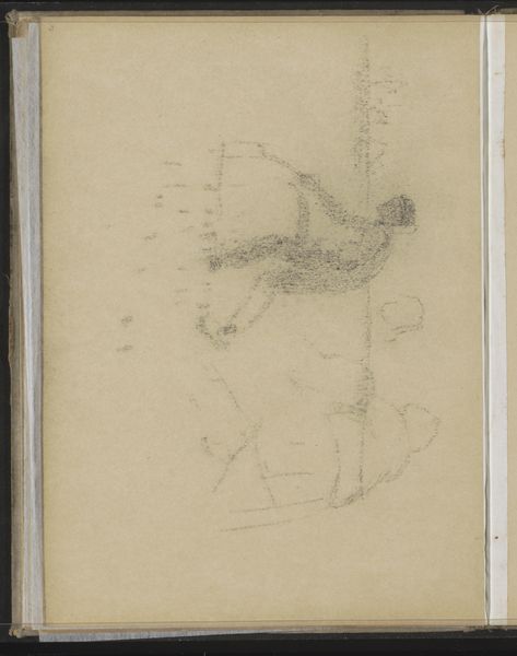 Willem Witsen created "Abklatsch van de krijttekening op pagina 10" using chalk, resulting in an image that feels like a ghostly trace. The pale hues and smudged lines give the work a sense of transience, as if we are viewing a memory fading before our eyes. Witsen employs a reductive approach, stripping the image to its barest essence. The abstract shapes hint at architectural forms, but never fully resolve, which destabilizes any fixed reading, inviting multiple interpretations and challenging our perception of space and form. The composition emphasizes the flatness of the page, disrupting traditional perspective and highlighting the materiality of the artwork. Ultimately, the drawing's power resides in its ambiguity. The semiotic interplay between the sketched lines and the implied forms encourages an active engagement, prompting us to question the nature of representation itself.