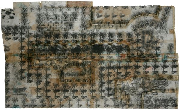 Hannelore Baron made this 'Untitled' artwork, probably sometime in the mid-20th century, with what looks like ink and collage on paper. It's all about the process here, you can see the traces of how it was put together. The paper is stained and aged, kind of like a found object, and then Baron added these darker shapes and loose inky marks. I’m drawn to the lower left corner, where there's a square of dark material that's been roughly adhered, so it's peeling away at the edges. It gives the piece a real sense of fragility and impermanence. And the blue spots scattered around give it all a dreamlike, melancholic feeling. Baron’s work makes me think of Kurt Schwitters, especially the way both artists used found materials and a limited colour palette to create these very personal, intimate worlds. Art is an ongoing conversation, isn't it? It's all about interpreting, reacting, and keeping the dialogue going.