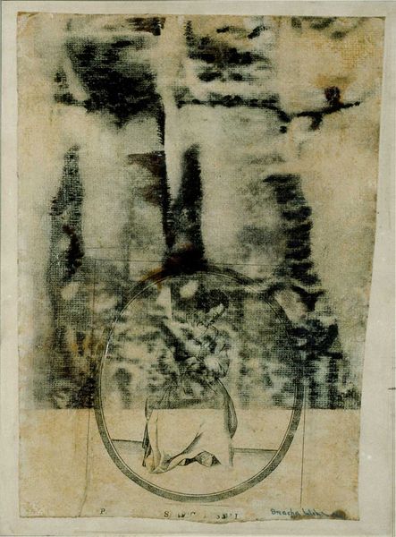 Curator: Let's pause here at Endre Balint’s 1952 oil painting, “Stone Bird.” The piece is rendered in somber hues over what otherwise feels like a rather sunny backdrop. What strikes you? Editor: It’s surprisingly... solemn, isn't it? A very stoic little bird atop what looks like the ruins of an ancient marker. It reminds me a bit of a grave marker, only stylized. The whole image feels like a meditation on memory and loss, painted with an unexpectedly light touch, yet its overall form feels totemic somehow. Curator: I love that interpretation. It's almost as if Balint is wrestling with how symbols become relics, emptied of their original meaning over time. Consider the bird itself: across cultures, it signifies freedom, spirit, even prophecy, but here it appears weighty, almost petrified. The title really anchors that. Editor: Precisely! And look at the platform on which it stands – the shapes seem to reference architectural ruins. Balint is pointing to how once vibrant, meaningful forms can be eroded, reduced to abstract remnants. This is what I think brings to mind something that is psychological because everything blends, like one of Carl Jung’s visions of past existence. Curator: That architectural suggestion is very powerful. I find myself questioning if the bright background is truly sunny, or more akin to the artificial, optimistic glow we often apply to nostalgic memories. Editor: Yes, maybe it's less about sunlight and more about… endurance? That golden field as a constant, contrasting with the ephemerality suggested by the crumbling stone figure. The sharp angles on the 'wings', that one white part in its 'skull', and the odd dripping feature out of the lower mass, however, also suggest motion and action... and yet again its title and the forms within bring me back to stagnation, solid shapes. Curator: It’s fascinating how the materiality of oil paint contributes to this tension, as the visible brushstrokes and textural nuances provide both depth and a sense of age. Is it hopeful or is it elegiac, though? Editor: Maybe it is a reminder that everything is indeed both? Or rather that they intertwine together for our psychological appreciation... like it did with Carl Jung. The symbolism keeps unfolding. Well, I know I certainly see the painting differently now. Curator: Me too. Endre Balint’s subtle orchestration of form and symbol really prompts us to reconsider the stories we tell ourselves about the past, I think. It remains etched, yet like every painting we discover things within ourselves with repeated glances and the passage of time.