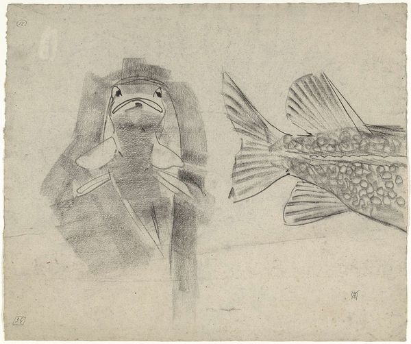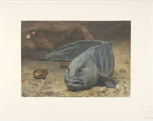 Willem Witsen created this watercolor, "Vis", whose date is unknown. The painting presents a strikingly immediate, close-up view of a fish, dominated by shades of grey and brown. The loose brushstrokes and the materiality of the watercolor lend the image a sense of spontaneity. Witsen’s interest in capturing the essence of his subject through careful observation echoes a broader artistic concern with realism. Yet, the seemingly straightforward depiction also hints at deeper philosophical ideas. The fish, isolated against a neutral background, becomes a symbol, prompting us to question its significance. The painting is less about the objective representation of a fish and more about exploring the nature of representation itself. Witsen invites us to consider how we impose meaning on the world around us, and how a simple image can be a site of complex interpretation.