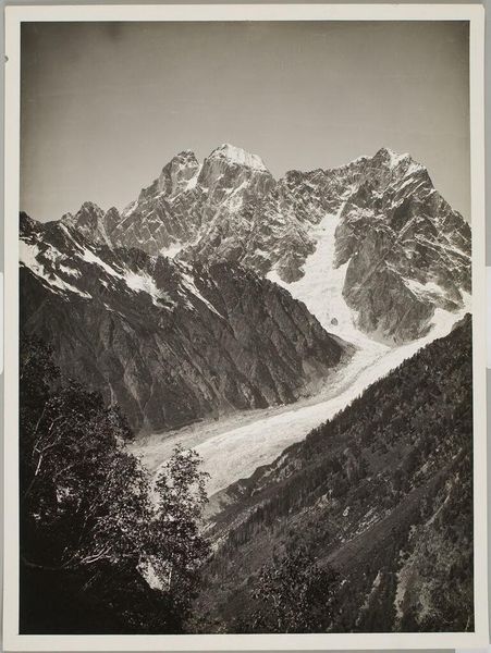 Robert Frank captured "Climbing with Pieter Dirk van der Poel, Canton of Valais" in a gelatin silver print. The stark greyscale palette emphasizes the mountain's imposing form, its peak shrouded in a soft, ethereal mist. Notice how the composition is dominated by the mountain which ascends diagonally, creating a sense of both grandeur and precariousness. Frank's choice of perspective makes the viewer feel as though they are peering up at an indomitable natural structure. This can be seen as a reflection of existential themes, questioning humanity's place in the face of nature. The interplay between light and shadow across the craggy rocks and patches of snow not only defines the mountain's texture but also evokes a mood of isolation. The photograph's starkness invites ongoing interpretations of space, perception, and representation.