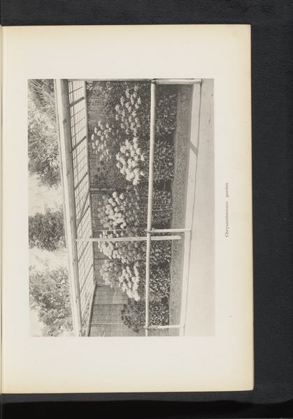 Editor: This photograph, "Gezicht op chrysanten in een tuin," taken before 1896 by Kazumasa Ogawa, captures a garden scene through what appears to be a latticed structure. The grayscale gives it such a serene, almost dreamlike quality. How do you interpret this work, especially given the artist's background and the time period? Curator: It's essential to understand Ogawa within the context of Meiji-era Japan. His photography was part of a larger movement where Japanese artists were grappling with Western influences while simultaneously reinforcing traditional cultural values. The chrysanthemums here, symbols of the imperial family and longevity, were not just pretty flowers. How does Ogawa's choice to frame them through this Western-style garden structure strike you? Editor: That's a great point; it creates a visual tension, almost a dialogue between tradition and modernity. I hadn’t considered how deliberate that could be. Curator: Precisely! Ogawa was keenly aware of the Western gaze, both celebrating Japanese aesthetics and making it palatable for a Western audience. We should also think about access to photography at the time. Who was likely viewing and commissioning these images, and what power dynamics are at play in that relationship? This photograph isn’t just an innocent depiction of flowers. What statement do you think Ogawa was trying to make by including elements that would specifically speak to both Japanese and foreign viewers? Editor: Now I'm also thinking about class and privilege. A serene garden like this implies leisure and resources. This might actually challenge some Western perceptions while subtly reinforcing existing social hierarchies in Japan. Curator: Exactly! It’s a powerful commentary hidden beneath a seemingly simple photograph. Seeing art through the lens of power dynamics and societal context reveals so much more than just the image itself. Editor: I'll definitely view these early photographs with new questions going forward. Thanks for shedding light on the bigger picture!
