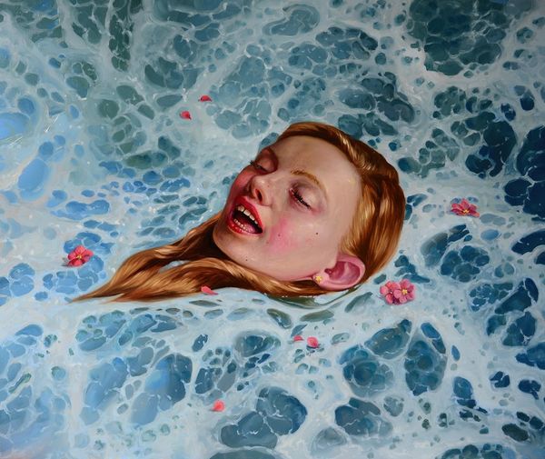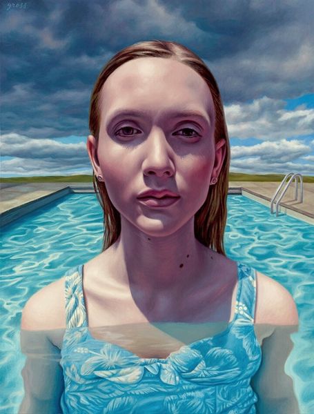 Alex Gross made this painting, "Translucency," with oil on canvas, using the traditional techniques of a painter. What is interesting about this painting is that Gross combines classical methods with a hyper-contemporary sensibility. Look closely, and you will see that he has rendered his figure with great attention to detail, using translucent glazes. The overall effect is undeniably surreal. It evokes what we might call the "uncanny valley" effect, where things seem both familiar and yet deeply strange. The smooth surface of the painting further contributes to this feeling, because brushstrokes are almost absent. This gives the painting a slickness associated more with reproduction than with the handmade. In this respect, Gross is commenting on the way that images circulate in our world, and the way that our perception is influenced by these omnipresent visuals. By bringing a highly refined technique to bear on the experience of contemporary image culture, Gross asks us to reconsider the boundary between craft and fine art.