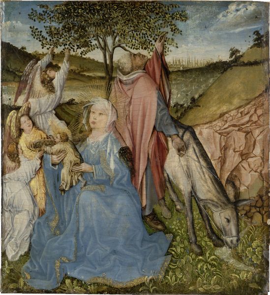 Hans Baldung's "Rest on the Flight to Egypt" presents us with a serene moment, laden with symbols, painted with oil on wood. Here we see Mary cradling the infant Christ, taking respite beneath a tree as Joseph looks on. Consider the strawberries at Mary’s feet. These fruits, often depicted in such scenes, symbolize righteousness and, paradoxically, the coming Passion of Christ. The motif of the strawberry carries an ancient resonance, appearing in various forms across cultures, from pagan fertility rites to Christian iconography. Its persistent presence across vastly different belief systems speaks to a deep, perhaps subconscious, human connection to cycles of life and death. The image's appeal lies in its ability to evoke a sense of peaceful intimacy, engaging us on a deeply personal level, reminding us of the universal need for rest and the quiet moments of reflection. The symbols evolve, their meanings layered and complex, resonating across time and space.