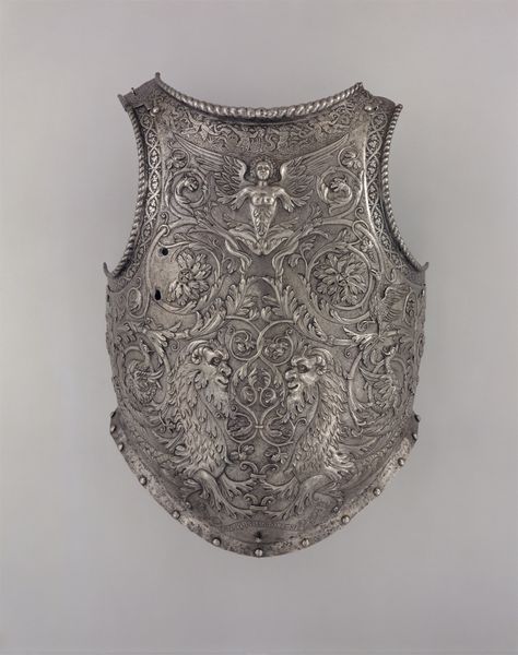 This is a backplate made from steel by Francesco Negroli in Italy, sometime in the 16th century. The fluted design radiating from the center is not merely decorative, but also serves a practical function, increasing the armor's strength. But beyond its functionality, this backplate speaks volumes about the social conditions of its time. In Renaissance Italy, armor was not just protection but a potent symbol of status and power. The Negroli family, renowned armorers, catered to the elite, crafting pieces that were as much works of art as they were military equipment. This backplate reflects the era's obsession with classical forms and heroic ideals, evident in the stylized musculature. The design of the armor may reference the Roman emperors. To fully understand this object, historians consult inventories, family papers, and treatises on warfare. By examining such resources, we can better understand the cultural values and institutional structures that shaped its creation. The meaning of art is always contingent on its social and institutional context.