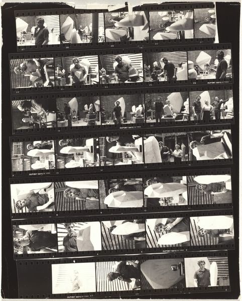 This film strip, titled Greek baptism no number, was captured by Robert Frank. The entire strip of film serves as a kind of contact sheet. But unlike some artists, Frank never cropped his images, so the whole roll is the artwork. It's the process, the full sweep, that becomes the piece. The rough edges and the uneven tones throughout give the images a raw, immediate feel. It's like peeking behind the scenes, seeing the artist's thought process unfold. The grayscale palette, with its stark contrasts, emphasizes the emotional weight of the scene, which feels both candid and carefully composed. I’m drawn to the way Frank lets the sprocket holes and frame edges become part of the composition. It’s a reminder that art is not just about the final image, but also about the physical act of making and seeing. The image recalls Walker Evans' stark, documentary style, and perhaps foreshadows Nan Goldin’s gritty, personal narratives. Photography, like painting, is an act of seeing, selecting, and framing a moment in time.