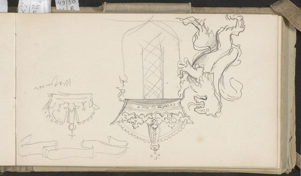 This anonymous pencil sketch on paper presents a design for a sleigh. The sketch gives us a glimpse into the material culture and social hierarchy of a time when sleighs were not merely vehicles, but emblems of status and luxury. Think about it: Who would be riding in such a lavish conveyance? The design suggests wealth and privilege, reflecting a society where mobility and comfort were deeply stratified along class lines. The careful detailing—the ornate floral adornments, the delicate swag of fabric—speak to an aesthetic sensibility that prized elegance. Consider how gender and power dynamics are implicated in this design. While the artist remains unknown, it's interesting to imagine the role of sleighs in courtship or social display, where gendered expectations of elegance and refinement would have been prominently on view. This design is not just about transportation; it’s about the performance of identity and the material expression of social status. It invites us to reflect on how objects, even in their most utilitarian forms, can become potent symbols of who we are and where we stand in the world.