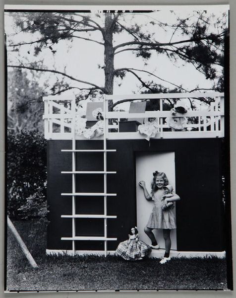Curator: This gelatin silver print by Robert Frank is entitled "Director with cameraman--Filming \"Landammann Stauffacher\"" and dates to 1941. The image offers an intriguing behind-the-scenes view. Editor: My first impression is the hierarchy – the director is elevated, literally, dictating what’s seen. It's a strong visual metaphor. You can almost feel the power dynamics inherent in filmmaking, and perhaps broader society. Curator: Indeed, the photograph captures the construction of a national narrative, in this case, I believe a patriotic film called "Landammann Stauffacher," produced during a period of national anxiety as Switzerland navigated the perils of World War II. It was meant to galvanize national unity. Editor: So the act of filmmaking itself becomes a propaganda tool. It makes me wonder, what stories are being elevated? Who has control of the narrative? And what voices are being obscured by that carefully constructed national image? Curator: Exactly. And Robert Frank’s work frequently grapples with the politics of image making. In his early work, before The Americans, Frank seems very concerned with capturing these sort of candid moments behind the scenes of the process. We can also see Frank wrestling with Swiss national identity, which, as we've said, was caught in the crosshairs of the war. Editor: It makes you question the seemingly objective nature of both documentary photography and historical films. Neither is truly neutral; choices are always being made about what to show and how. This behind the scenes shot actually reveals more about the power structures than any heroic film image. Curator: I agree entirely. By framing the director and cameraman, Frank exposes the machinery, the literal construction, of historical memory and national myth. It allows us to consider the constructed nature of seemingly natural narratives, doesn't it? Editor: Absolutely. It's a powerful reminder to always look beyond the finished product and examine the structures and biases that shaped its creation, especially considering who gets to tell these stories. Curator: Precisely, I will look at film in a totally different light after this exploration of Robert Frank's picture.