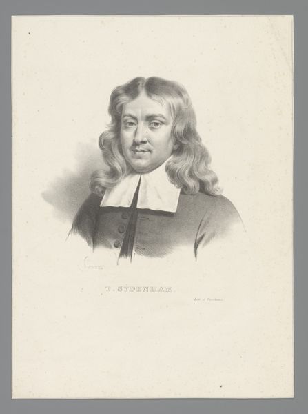 This is a portrait of Govert 't Hoen, made by Paulus Jolly in the 19th century. It’s a reproduction made using a technique called lithography, a printing process that democratized image-making. The portrait's creation relied on the properties of limestone, on which the image was drawn with a greasy crayon, allowing ink to adhere only to the design when printed. Lithography was distinct from traditional methods like etching or engraving, which required highly skilled artisans. This process, on the other hand, enabled more affordable and quicker reproductions, influencing the distribution of images and knowledge in society. Lithography contributed to the rise of mass media and visual culture. The creation of multiple copies allowed for wider circulation, impacting how people consumed art and information. By looking at its method, we can see how the portrait democratized art, challenging traditional hierarchies between handmade and mass-produced images.