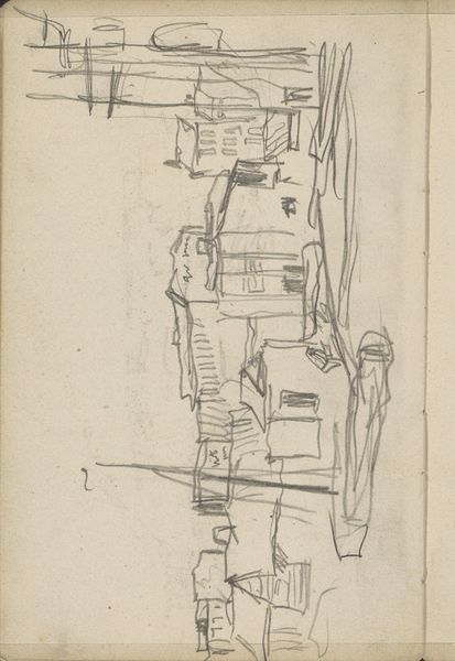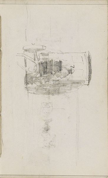 This sketch of the Overtoom in Amsterdam was drawn by George Hendrik Breitner. The drawing presents a skeletal structure of lines, capturing a fleeting moment of the urban landscape. It invites us to consider how Breitner uses minimal strokes to convey a sense of place and atmosphere. The composition teeters on the edge of abstraction. The buildings and boats are reduced to their most basic forms. This aligns with the broader artistic movements questioning traditional representation. Breitner emphasizes the act of seeing over the act of depicting. The sketch can be appreciated for its structural simplicity and honesty. The rough texture of the paper supports the lines, creating a sense of immediacy and rawness. It suggests a scene captured spontaneously. This piece challenges conventional notions of what constitutes a finished work of art. The drawing celebrates the potential of suggestion over explicit detail. It transforms the ordinary into an opportunity for contemplation.