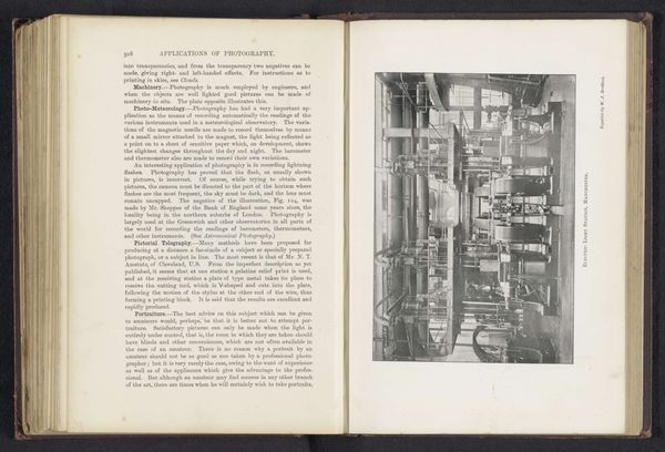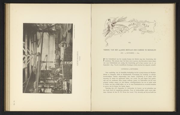 Curator: It strikes me as something out of a lost world, all gray and silver... ghostly, even. It makes you wonder what's been forgotten, doesn't it? Editor: That's an intriguing reaction to "Interieur met werknemers van de machinefabriek van Gebroeders Stork & Co," dating from before 1894. It’s a photographic print currently held at the Rijksmuseum. What specific visual cues are giving you this impression of spectrality? Curator: Well, the light for starters...it is so uniform, with almost no dark areas. It gives the machinery a sense of ethereality, making it look more like some weird dream factory than a functional place of labor. What sorts of interpretations did people originally put on factory images such as this? Editor: Images of industrialization from that era often served as symbols of progress and modernity, showcasing the scale and technological prowess of the age. This particular image invites a different kind of observation, though. Curator: Exactly! Forget the heroic angle! Look closely: it's almost impossible to distinguish individual workers. They are swallowed, if you will, into this behemoth of nuts, bolts and pipes! I think a viewer back then would have been pretty thrilled by it, don't you? All these promises for a new society and life of abundance for the common worker. Editor: I think it is likely that viewers might well respond with ambivalence. The iconography of industry frequently hints at power and sometimes anonymity, reflecting an anxious negotiation with labor's changing role at the time. It visualizes an emerging world. This print provides a powerful commentary on this ongoing tension. Curator: Hmm... power versus anonymity... it hits the nail on the head, and how striking, really, that this rather obscure photographic print can trigger such a profound discussion. Editor: Yes, art often speaks across the ages, reflecting timeless concerns. It offers an avenue through which to analyze our society as it develops.