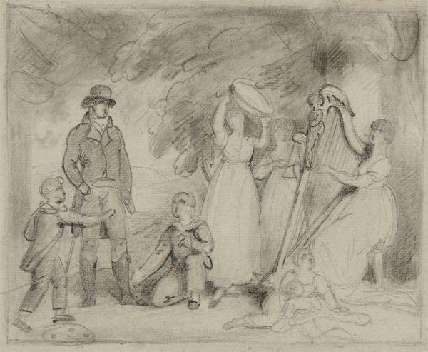 Editor: Winslow Homer's pencil drawing, "Playing Cards," created in 1862, captures a scene that feels simultaneously mundane and significant. There's a weariness that permeates the sketch, despite the casual activity. What layers do you unpack when you look at this drawing? Curator: Oh, this transports me. It’s almost as if I can hear the faint murmur of conversation, the shuffle of cards against worn uniforms. It's not just men passing the time, it's a glimpse into their resilience. Don't you feel the stillness around their concentration? These are likely Civil War soldiers—1862 was a brutal year—and Homer offers us a vignette of life away from the battlefield. Look how delicately he renders their faces, each a study in fatigue, but also a spark of humanity refusing to be extinguished. Editor: It's interesting you say that. To me, the figures seem a bit unfinished, maybe even impersonal? Curator: Ah, but is that impersonal, or universal? Homer is less concerned with individual portraiture and more invested in conveying the collective experience, the shared circumstance. The tent in the background… does it feel like shelter or confinement? And the game of cards itself, is it chance, strategy, or a desperate attempt to control some small aspect of their fate? Perhaps a blend of all three? He's not documenting war as glory, but as lived experience. Editor: That really reframes my perspective. It makes you wonder about their stories. Curator: Exactly! And that, for me, is where the true power lies. The image resonates with honesty. It asks us to consider what these moments of quiet mean in times of conflict, for any of us. We search for an opening, a card to play... it is so delicately powerful. Editor: I appreciate how you draw out the quiet complexities of such a simple scene. Curator: The quiet often whispers the loudest, doesn’t it?