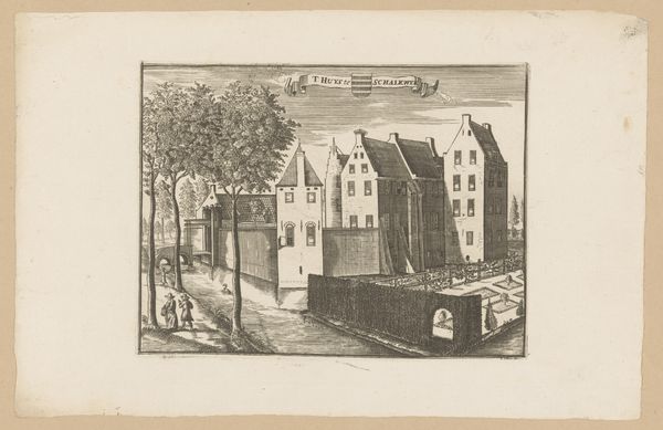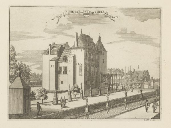 Editor: So, this is Jan van Vianen’s "Gezicht op Kasteel Sandenburg," a print from around 1730. It's very detailed, almost like a technical drawing, and a little bit…austere, maybe? What can you tell me about it? Curator: That perceived austerity is interesting because it allows us to question what power structures are in play. The controlled lines, the calculated composition – they speak to a very specific, patriarchal vision of land ownership and control in the Baroque period. Who do you think this print was made *for*? Editor: Well, presumably someone connected to the castle? Maybe to show off their wealth or status? Curator: Precisely. These images circulated within elite circles, reinforcing a specific social order. Think about the labor and resources needed to construct and maintain a place like Sandenburg. And who *isn't* visible in this idealized view? Editor: You mean the people who worked there? The farmers, servants… Curator: Exactly. Their absence is telling. The print sanitizes and romanticizes reality, effectively erasing the labor and social inequalities upon which this opulence was built. It presents the castle as a symbol of inherent right rather than acquired privilege. Do you notice how the landscape seems to be tamed? Editor: I see what you mean. It’s not wild at all; very ordered and controlled. Curator: It's a very deliberate control, reflecting humanity’s perceived dominance over nature, something deeply tied to colonial and capitalist ambitions of that era. The very act of capturing and reproducing this scene as a print allowed for easy distribution. It solidified power by presenting the Castle and surrounding areas as possessions to be seen and ideally owned or desired. Editor: Wow, I hadn't considered all of that. I was just seeing it as a pretty picture of a castle. Curator: Art so often operates that way. Once we start asking who is in the frame and, more importantly, who isn't and what systems of power were reinforced then our perspective radically changes. Editor: Definitely gives me a lot to think about!