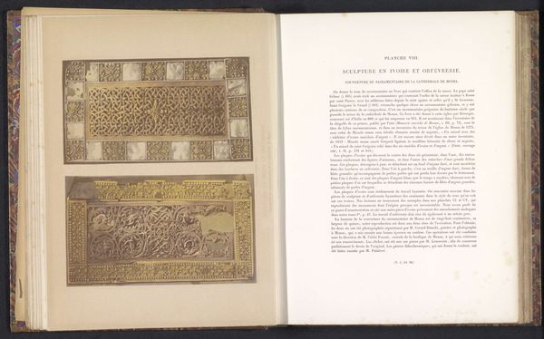 These photographic reproductions depict two relief discs by William H. Griggs. The original material is stone, a medium associated with permanence, solidity, and significant manual labor. The discs themselves are densely populated with figures, suggesting narrative scenes. Griggs meticulously carved each detail, from the folds of garments to the expressions on faces. This laborious process imbues the artwork with a sense of time and dedication, highlighting the artist's skill and the effort required to transform raw material into complex forms. While we’re only seeing these in a photographic reproduction, consider the social context: stone carving has historically been associated with monumental architecture, religious artifacts, and elite patronage. This would place the artwork within a broader tradition of skilled craftsmanship and artistic production, reflecting the cultural values and economic systems of the time. Paying attention to the materials, making, and context allows a deeper appreciation of the artwork's meaning and significance, challenging traditional distinctions between fine art and craft.